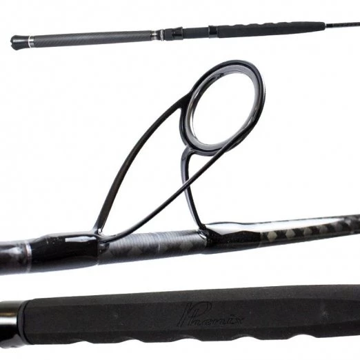 Phenix Black Diamond East Coast Spinning Rods are available in several models in 6’6″-7’6″ lengths. They are dark gray and black. Fish them with braided or monofilament lines.