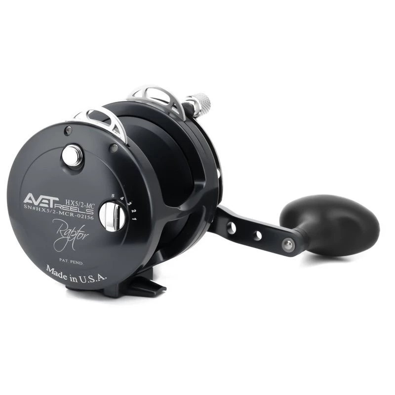 Avet HX 5/2 MC Raptor 2-Speed Lever Drag Reels are available in several colors including blue, gold, black, gunmetal, green, and more!