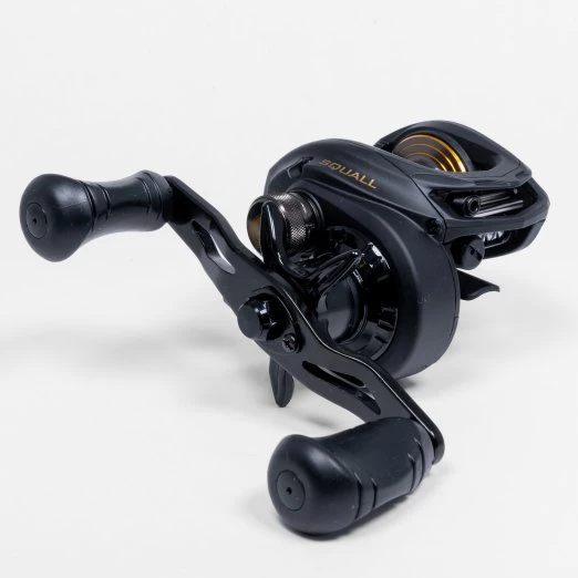 Penn Squall Low Profile Reels are available in 200, 300 and 400 sizes. The 200 and 300 have a double paddle handle while the 400 features an EVA ball power knob. The low gear ratio models are black and gold while the high gear ratio models are black and red.