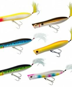 Tsunami Talkin Popper XD Plugs are available in 5″, 6″ and 7″ sizes and six spectacular colors. All of the yellow/golden color plugs have yellow teasers and all the other models have white teasers. All of these plugs float. Buy some Tsunami Popper lures today!