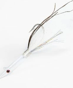 S&S Game Over Slimtail Bucktails are hand tied in the USA. They are available in sizes 3/4-3 oz in three awesome colors. Choose from Pearl, Red Death and Sandeel. These American bucktails are high quality!