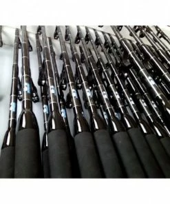 Time to sharpen up those tuna hooks and twist up some shark rigs, the Sloopster F5 Offshore Trolling Standup Rod has arrived! The F5 comes well equipped with all the goodies that serious bluewater captains demand – PacBay heavy-duty wind on roller guides, PacBay aluminum detachable uni-butt and a long, comfortable EVA fore grip. However, with a modest price tag, the F5 will only put a hurting on the fish, not your wallet. The carbon fiber wrapped fiberglass blank is both very strong and very forgiving, which is of dire importance when hooked up to a voracious oceanic predator. This 5’10” trolling style rod is rated at 50-100#, and will easily handle any 50 wide reel on the market today. The Sloopster F5 Offshore Trolling Standup Rod is ideal for any trolling, standup or chunking application, and can easily handle bluefin, yellowfin, and bigeye tuna. Sharks, including trophy class makos and threshers are well within the wheelhouse of this beastly stick, and over the years, the F5 is sure to slay its share of PB fish.