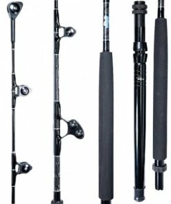 Sloopster F5 Trolling Standup Rods are black with carbon fiber wraps and a hint of silver.