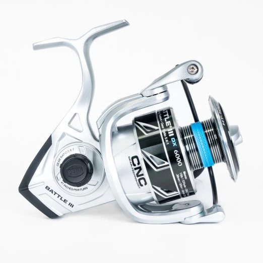Penn Battle III Spinning Reels are available in six models. They are black and silver with blue accents. If you love fishing, you are going to love the Penn Battle III DX Spinning Reels!