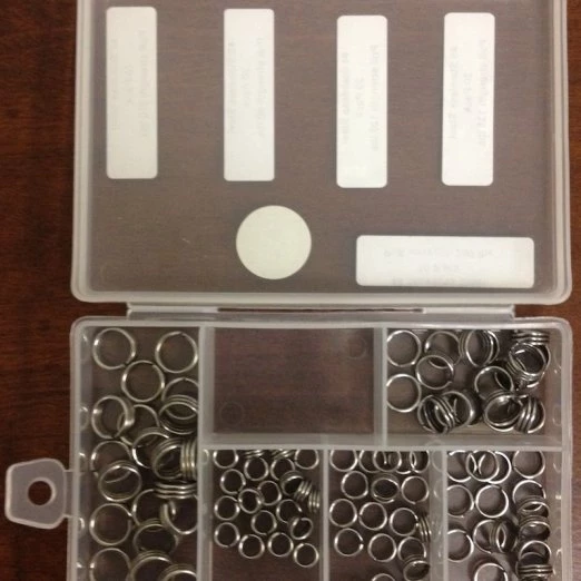 The Wolverine Split Ring Set includes 100 split rings from sizes 3-7 in a reusable plastic container.